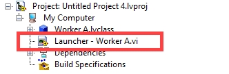 Running the Launcher VI will launch the application's head Worker along with all of head Worker's statically-linked subWorkers. If the Launcher VI is aborted, then all Workers in the application's Worker call-chain hierarchy (both statically-linked and dynamically loaded) will also be immediately aborted.